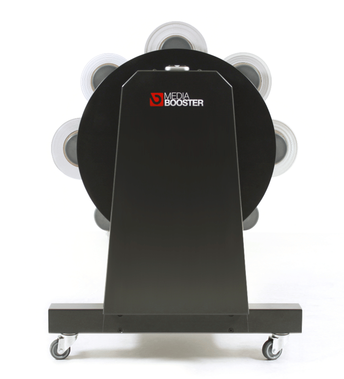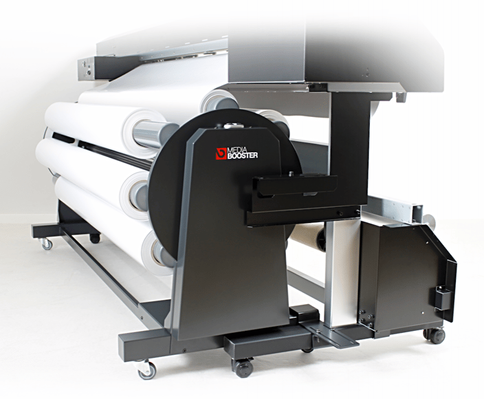 Wechseln Sie spielend leicht und innert Sekunden Ihre Printmedien. Ob selbstklebende Folien, Banner, Papiere, Lochfolien oder Textilien, Sie haben das richtige Material sofort zum drucken bereit. Der neu entwickelte Media Booster steigert Ihre Flexibilität und bringt eine deutliche Verbesserung Ihres Digitaldruck-Workflows. Der lästige und ständige Materialwechsel bleibt Ihnen erspart!
